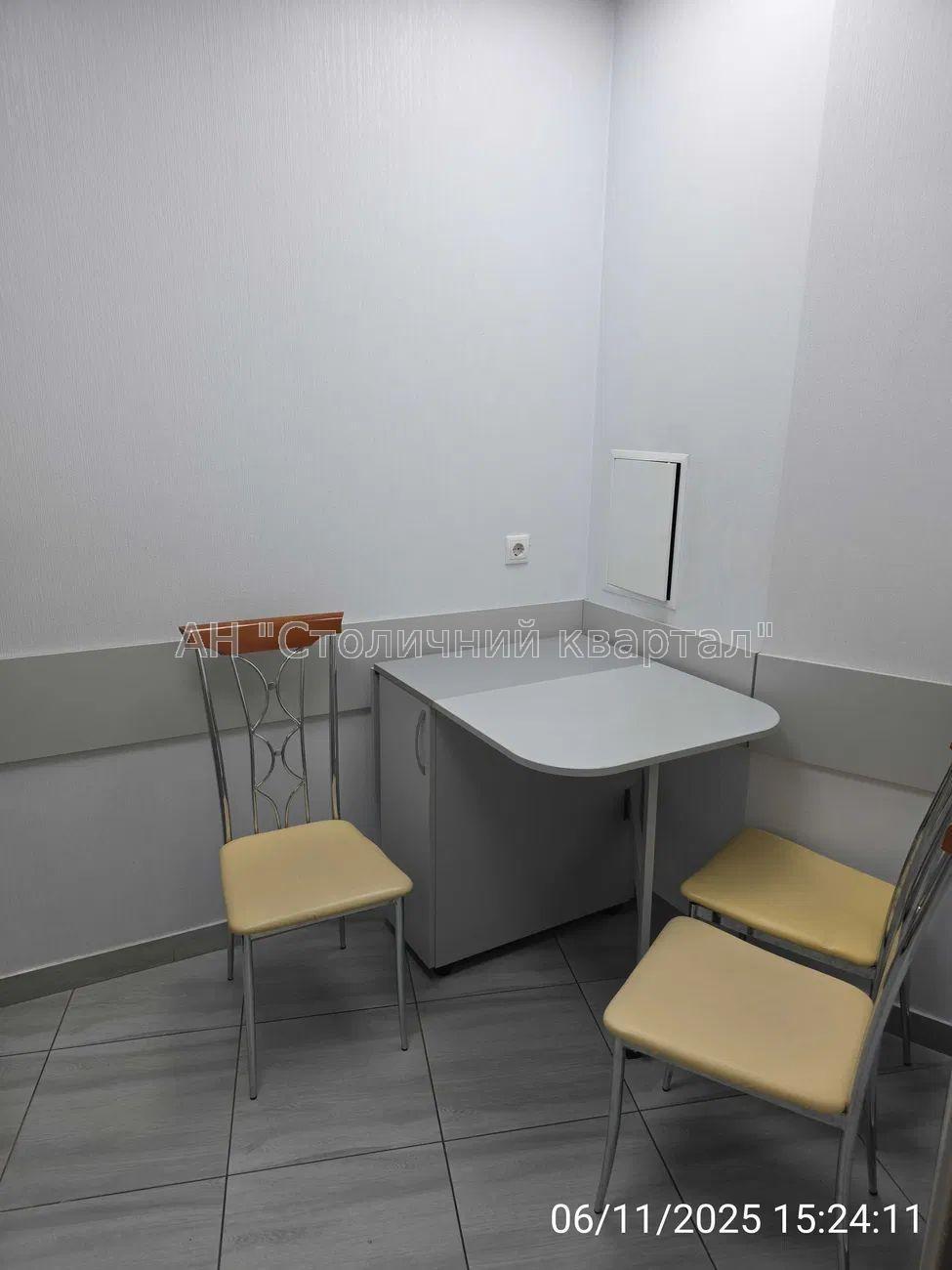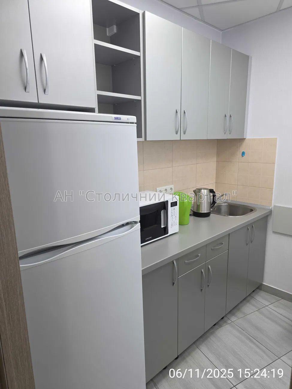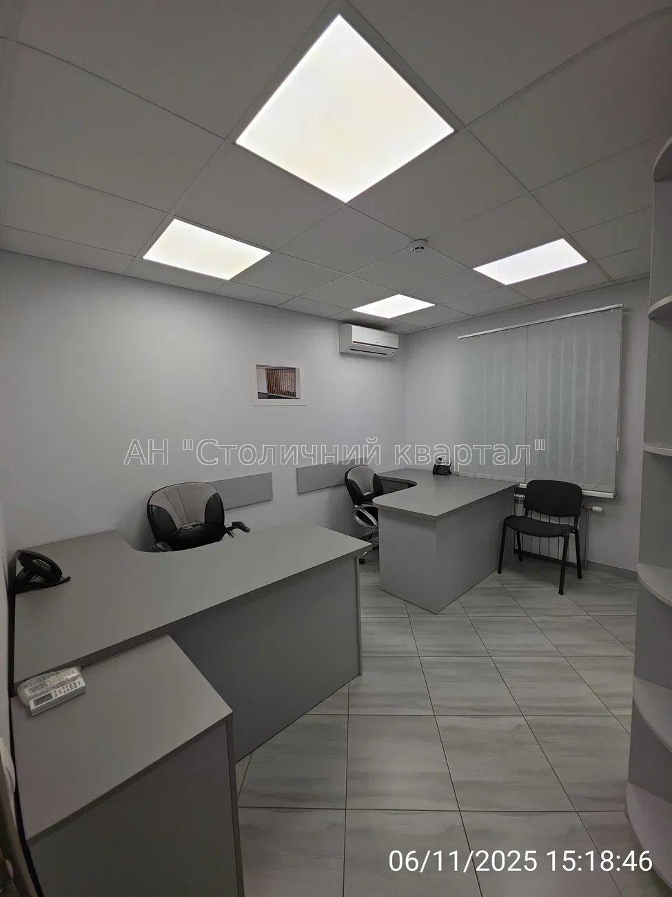 - Загальна площа приміщення – 105 м2: 4 кабінети; обладнана кухня (холодильник, кавоварка, чайник, мікрохвильова піч, стіл, стільці, кухонний гарнітур); 2 окремі санвузли.