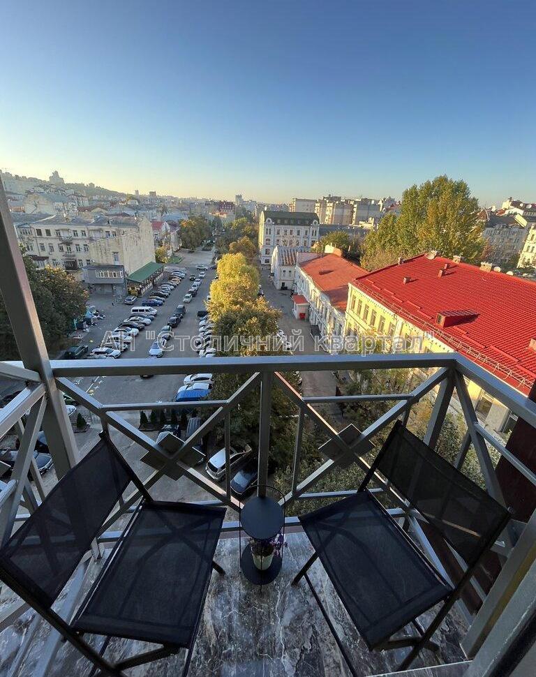 Оренда однокімнатної квартири в центрі Подолу. Вхід до метро прямо з двору будинку. Панорамний вигляд з балкону на площу кінотеатру Жовтень. До Андріівського узвозу 5 хв.пішки.