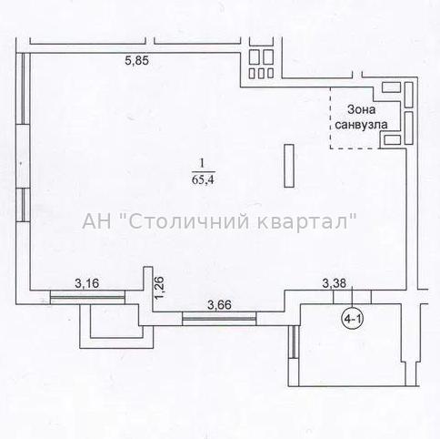 - Загальна площа приміщення – 65,4 м2 – open space, санвузол.
