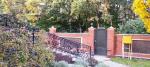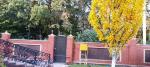 По фасаду кований паркан та ворота з електро-підйомником.