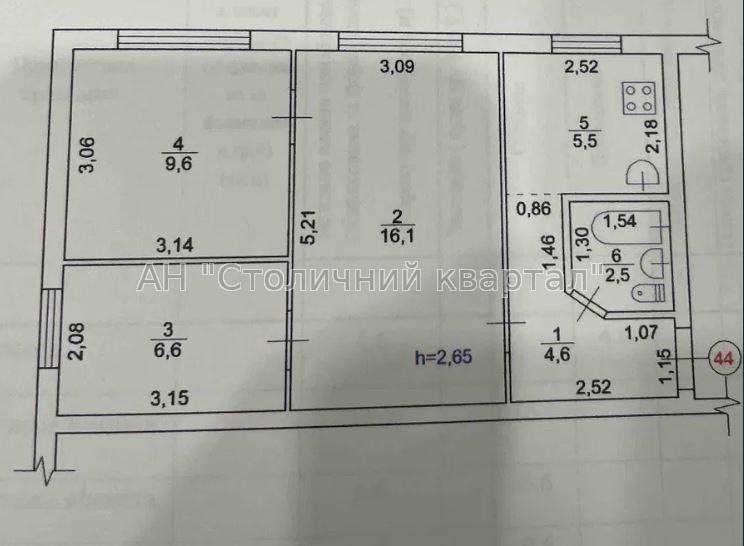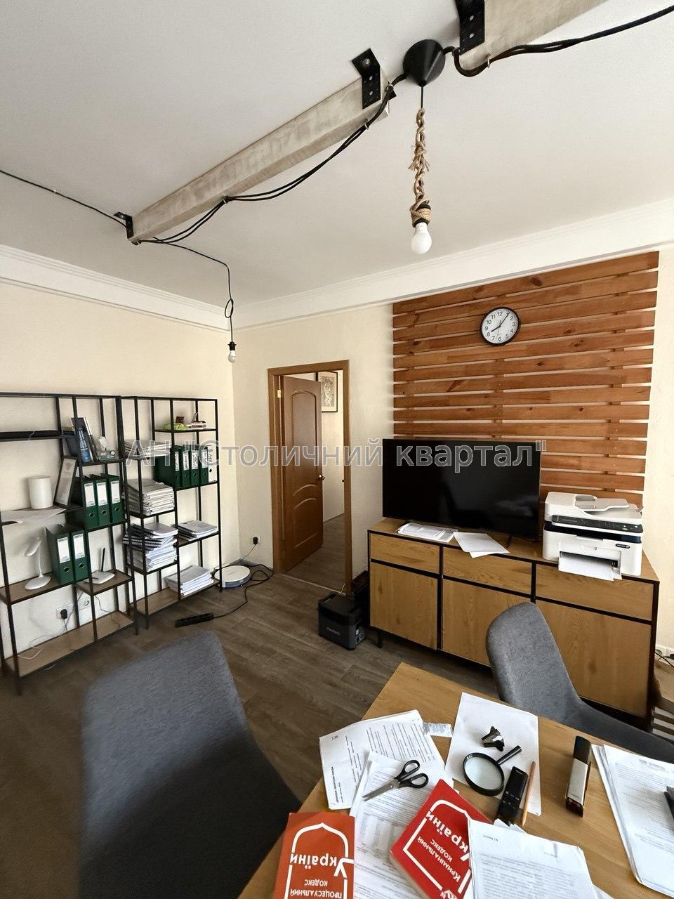 - Загальна площа приміщення - 45м2: 3 кабінети, кухня, санвузол. На кухні - кухонний стіл та стільці, журнальний стіл.