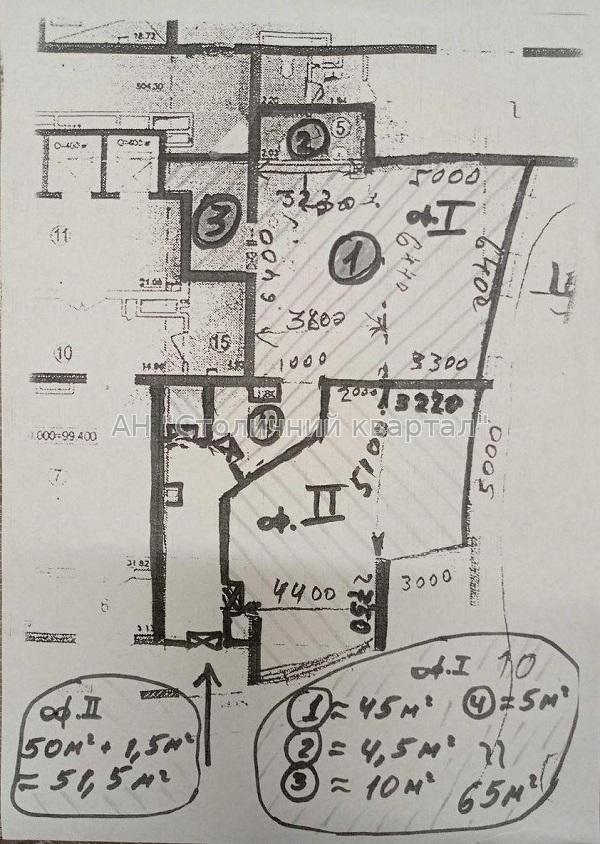 - Загальна площа приміщення – 55 м2: три кімнати - одна велика (метрів 40) і дві по 8-10м2, санвузол.