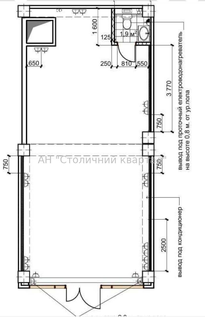 - Загальна площа приміщення – 62м2 – торговельний зал, зручний санвузол у світлих тонах, підсобка (при необхідності можна зробити перепланування – перегородки не несуть).