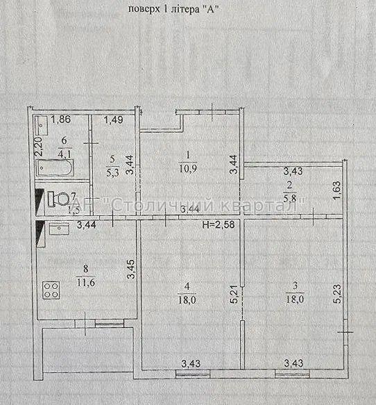 - Висота стелі: 2,8 м