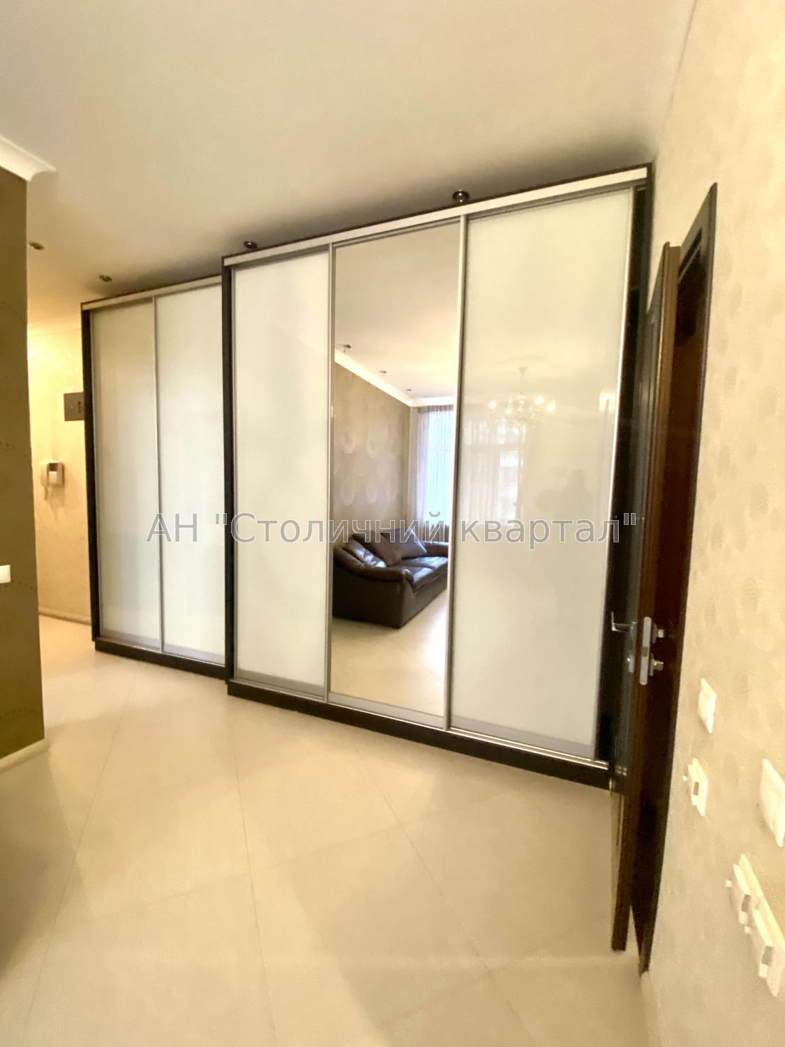 У вітальні великі шафи-купе.